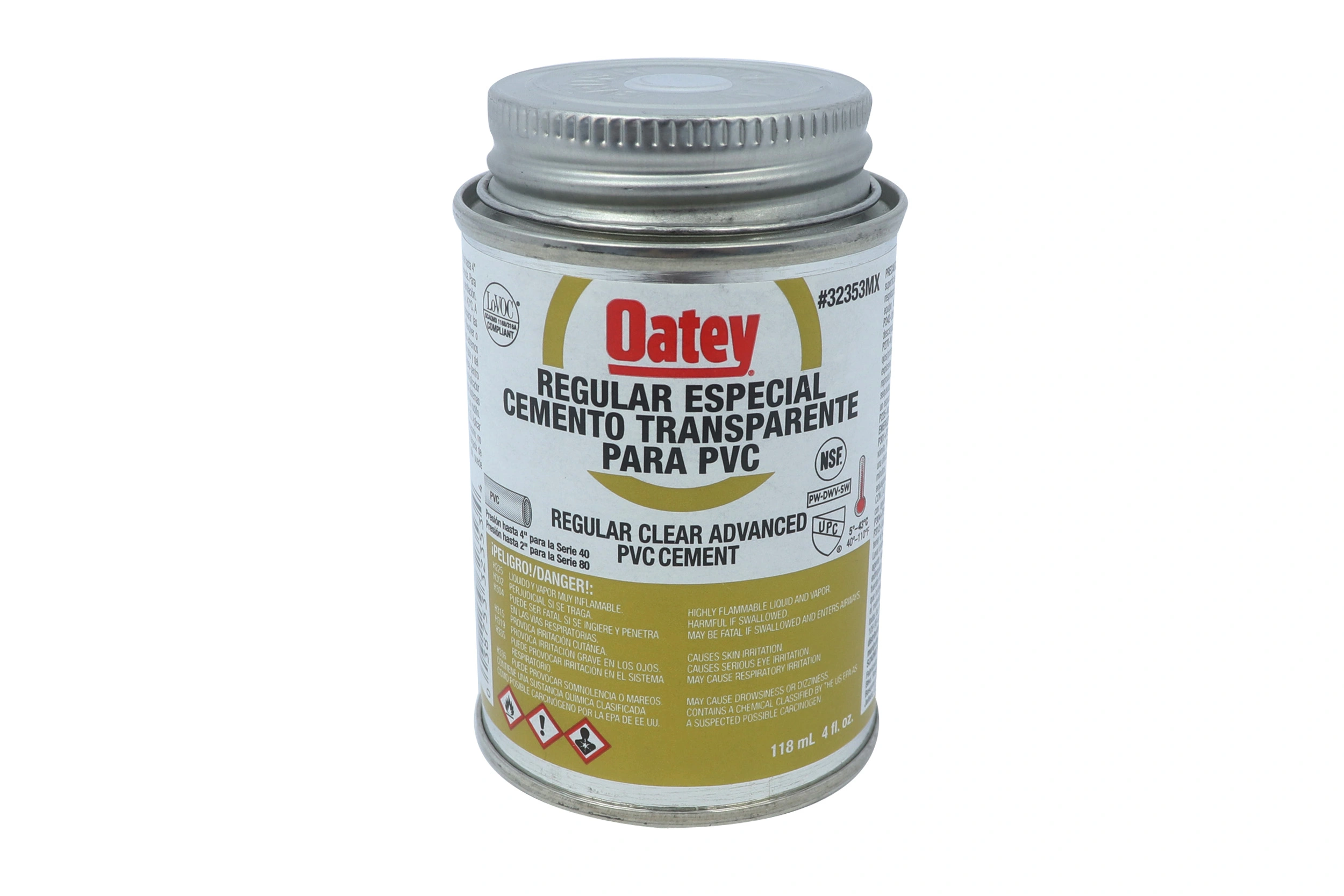 Cemento transparente regular para uso en tubos y conexiones de PVC sanitario, conduit, rd’s, C-40 hasta 4 pulg y en C-80 hasta 2 pulgadas de diámetro. Recomendado para tuberías de agua potable, presión, riego, tuberias de eléctricidad, trabajos de plomeria y ventilación.